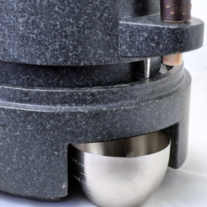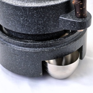 正確な加工技術が必要ですが、この対策で石臼の周りに飛び散る粉はほぼ防ぐことが出来ます。